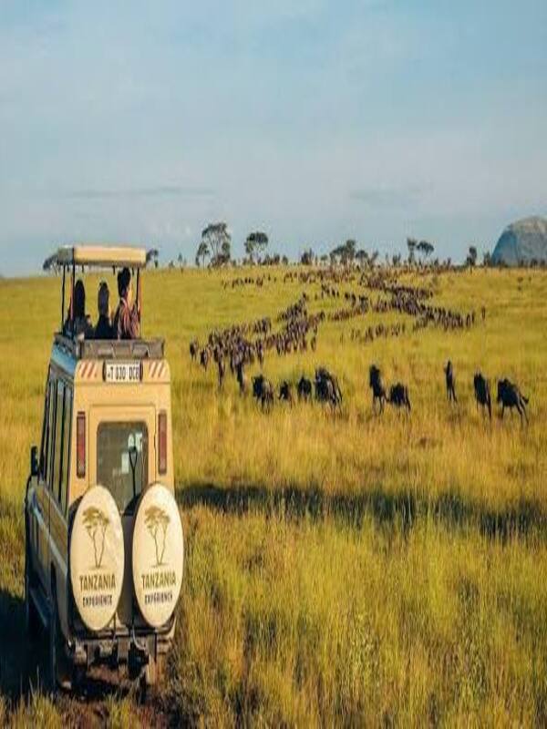 Travel to the endless plains of Serengeti, home to the Great Migration. Witness millions of wildebeest, zebras, and gazelles crossing the savannah. Spot predators like lions, cheetahs, and hyenas in action. Enjoy evening game drives and dinner at your luxury tented camp overlooking the plains.